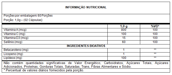 Fonte LICOPENO, auxilia no funcionamento muscular e na manutenção de mucosas.