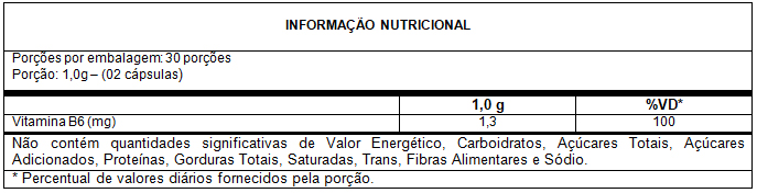 Vitamina B6 - 60 Cáps. 500mg